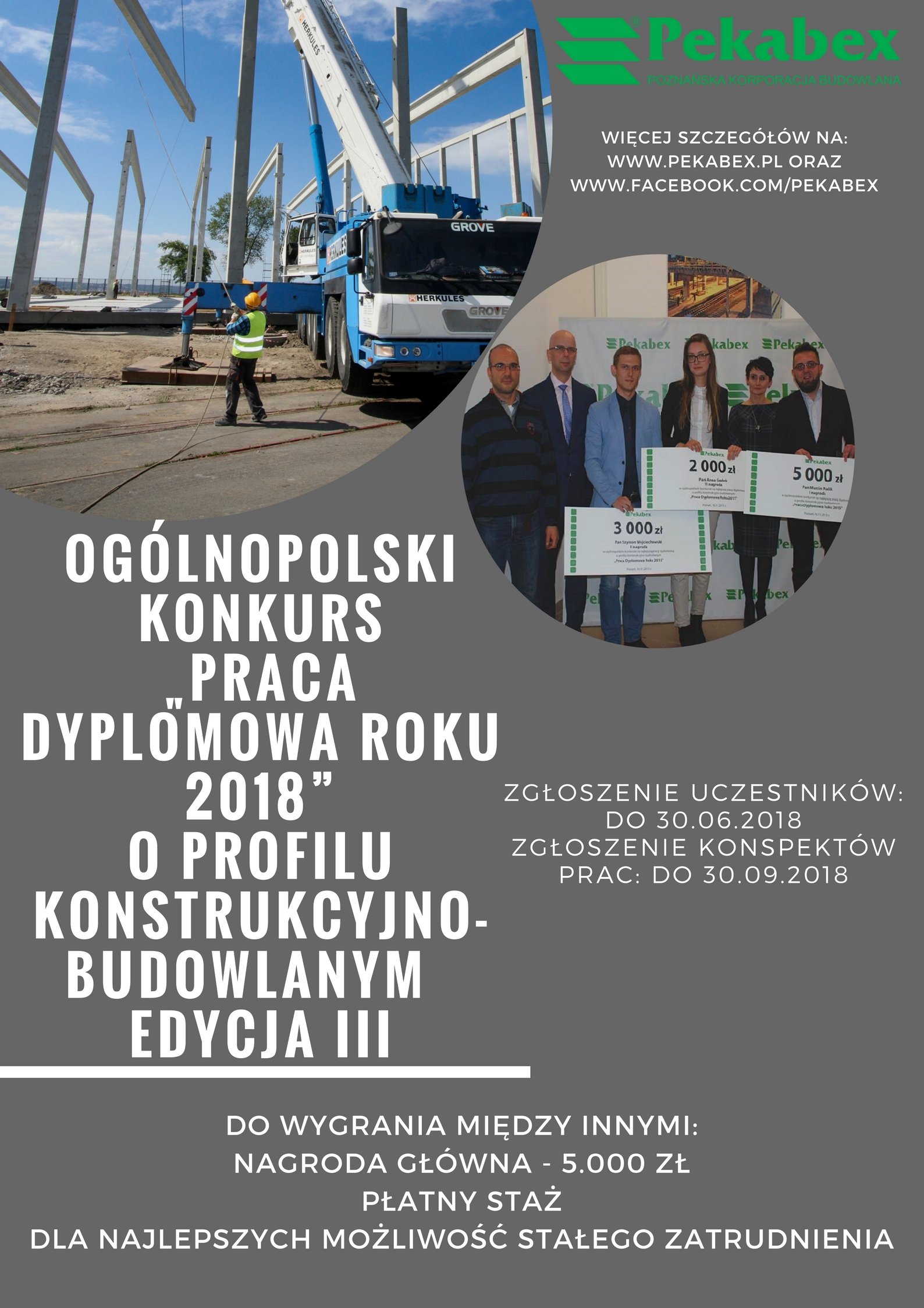 Nagroda Główna w Konkursie to 5 000 zł. Laureaci konkursu otrzymają również propozycje płatnego stażu w wybranym przez siebie oddziale Pekabex, a dla najlepszych czeka możliwość stałego zatrudnienia w firmie.