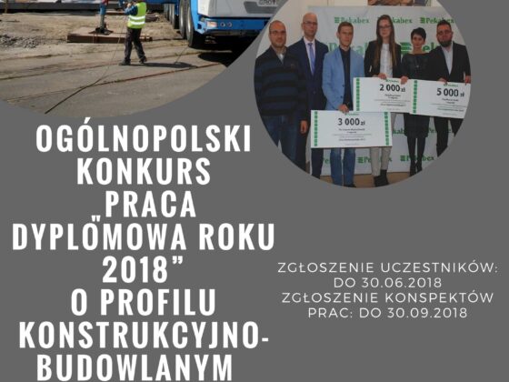 Zapraszamy Studentów Uczelni Technicznych do udziału w III Edycji Ogólnopolskiego Konkursu na Pracę Dyplomową Roku 2018. Zgodnie z harmonogramem zapraszamy do przesyłania formularzy zgłoszeniowych do 30 czerwca 2018 r. na adres konkurs.dyplom@pekabex.com…