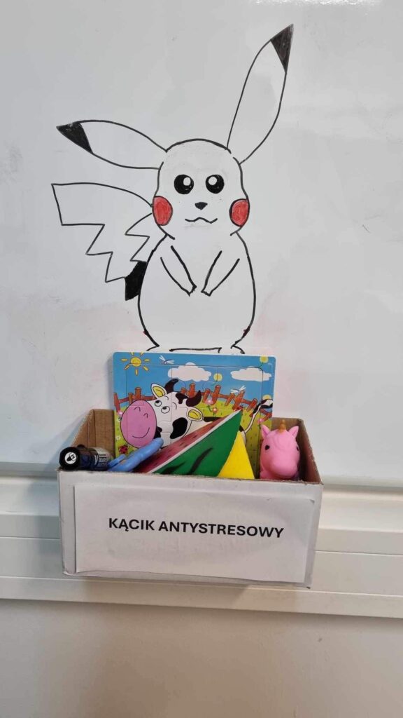 Na zdjęciu obok widzimy kącik antystresowy przygotowany przez Sylwestra – najważniejsze, aby drobne rzeczy ukazywały uśmiech na naszych twarzach 🙂