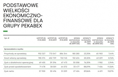 Mamy więc wszelkie argumenty by dalej budować skalę prowadzonej działalności, z korzyścią dla Akcjonariuszy. Cieszę się, że podejmowane przez nas działania spotykają się z uznaniem rynku, przekładającym się na wzrost rynkowej wyceny Grupy Pekabex. W okresie 2020 roku kurs akcji osiągnął stopę zwrotu na poziomie 72 procent.