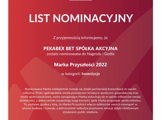 Pekabex BET z nominacją do Nagrody Marka Przyszłości 2022