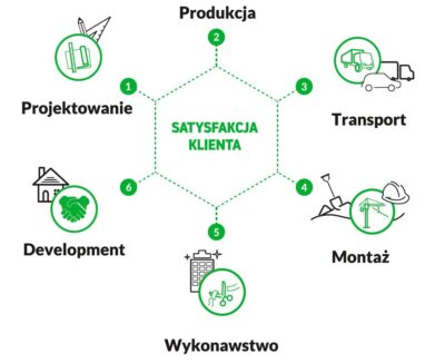 transportem i montażem elementów prefabrykowanych. Posiadamy własne biuro projektowe zatrudniające wysokiej klasy inżynierów z międzynarodowym doświadczeniem i na stałe współpracujące z kilkoma biurami zewnętrznymi. Zapewniamy dowóz wyprodukowanych prefabrykatów na budowy zarówno w Polsce jak i za granicą, zaś nasze profesjonalne i w pełni wyposażone ekipy montażowe są gotowe do zrealizowania montażu niezależnie od pory roku i warunków klimatycznych.