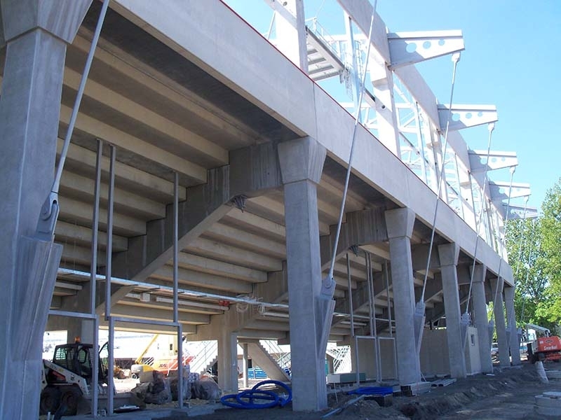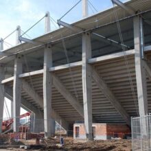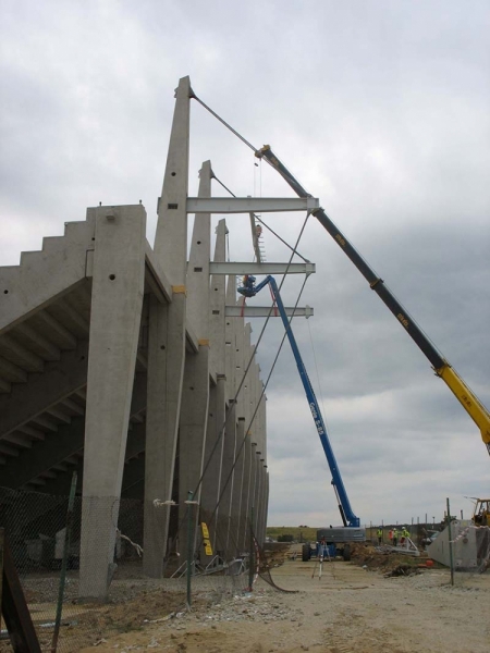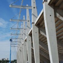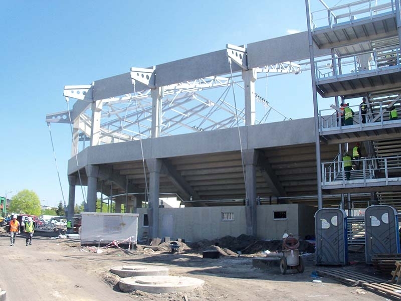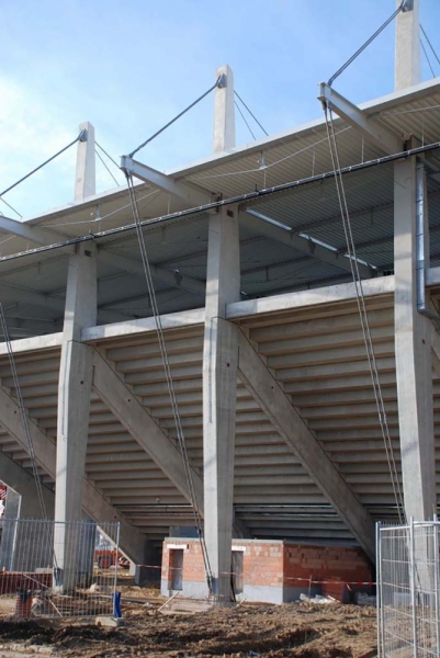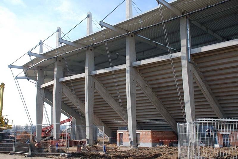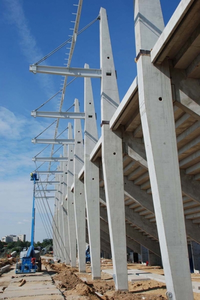 Produkujemy specjalne prefabrykowane słupy o nietypowych przekrojach, które są wykorzystywane do budowy stadionów.