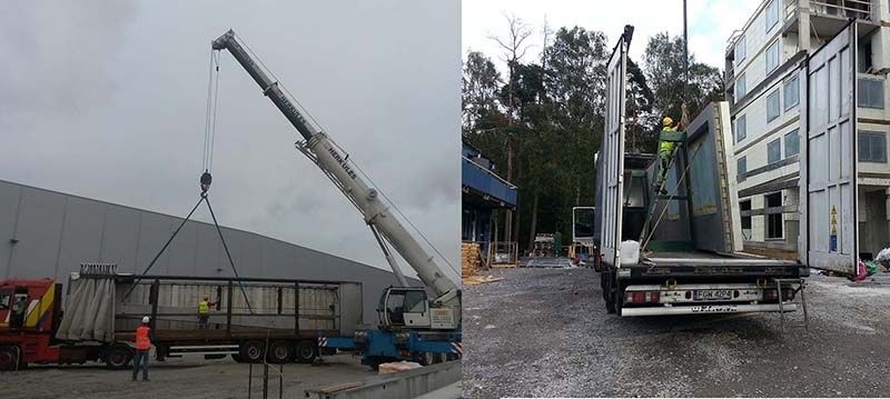 • rozładunek elementów prefabrykowanych bądź ich bezpośredni montaż z kół.