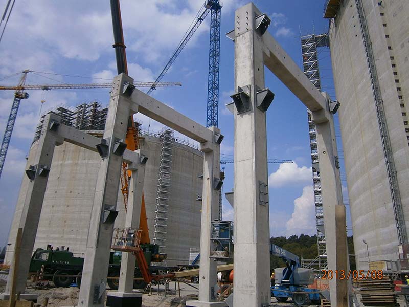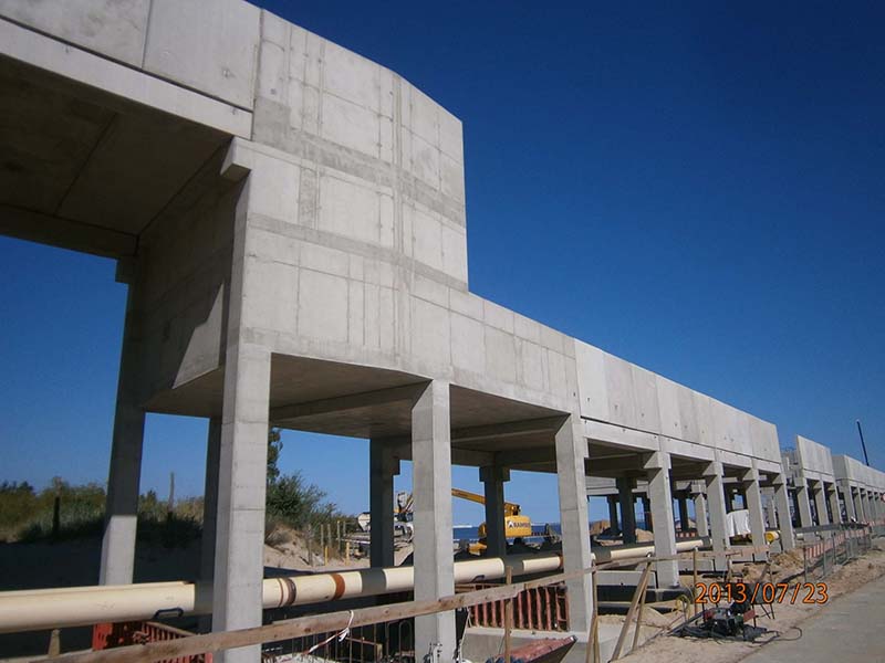 W zakresie naszych prac było wyprodukowanie i dostarczenie następujących prefabrykatów: 682 sztuk fundamentów zbrojonych i kielichów, 292 sztuk fundamentów pod maszty oświetleniowe, 685 sztuk słupów zbrojonych, 9 stoposłupów (budynek ochrony na falochronie), 25 sztuk ścian na fundamentach, 26 sztuk ścian tworzących boczne kanały, 15 sztuk podwalin i ścian (budynek ochrony na falochronie), 3596 sztuk U-channeli, 298 sztuk kanałów kablowych i pokryw na kanały kablowe, 750 sztuk belek i rygli zbrojonych, 137 sztuk belek na zbiornikach. Łącznie wyprodukowaliśmy 10 895,38m3 betonu na potrzeby tej inwestycji.