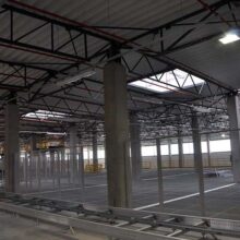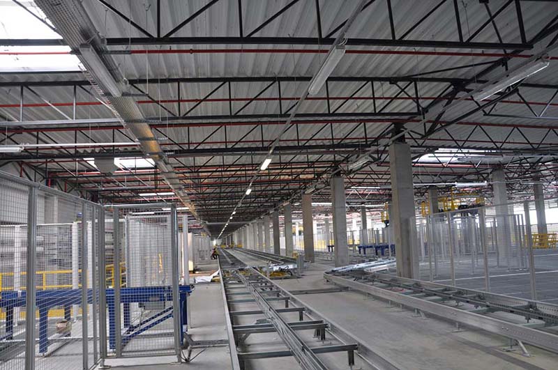 Centrum logistyczne JYSK w Radomsku obejmuje magazyny wysokiego i niskiego składowania, łączniki oraz budynki techniczne i socjalne. W zakresie firmy Pekabex było zaprojektowanie, wyprodukowanie, dostarczenie i zamontowanie elementów konstrukcji prefabrykowanej łączników pomiędzy halami wysokiego składowania a częścią hal istniejących, hali magazynowej, doków przeładunkowych ze ścian trójwarstwowych z fakturą z kruszywa płukanego bazaltu, budowę kotłowni i pompowni pożarowej. Pekabex odpowiedzialny był również za malowanie elewacji, zbrojenie i wykonanie nadbetonów i posadzek barwionych na stropach z płyt kanałowych sprężonych oraz z płyt pełnych sprężonych z odpornością ogniową 240minut. Łącznie wykonaliśmy: 1650m3 słupów, 890m3 belek, 130m3 dźwigarów, 2000 m2 ścian i podwalin, 11500 m2 płyt HC, 4500m2 płyt stropowych pełnych, 2300m2 ścian oddzielenia ogniowego, 200m3 elementów doków.