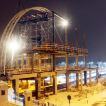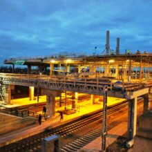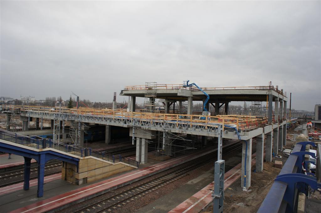 Obiekt został wybudowany w terminie mimo bardzo ciężkiej zimy. Prace trwały również w temperaturach -15 stopni Celsjusza. Montaż był bardzo skomplikowany, ponieważ cały obiekt znajdował się nad czynnymi torami kolejowymi. Prace stricte montażowe odbywały się tylko podczas 5 godzin nocnych, ponieważ tylko wtedy były wyłączane trakcje. Na obiekt składa się prawie pół tysiąca elementów prefabrykowanych. W zakresie Pekabex były: słupy, belki, płyty HC, płyty TT oraz konstrukcja stalowa podwieszająca stropy. Jedna z ciekawostek tego obiektu, jest fakt, iż część stropów była podnoszona hydraulicznie do swojego docelowego miejsca.
