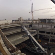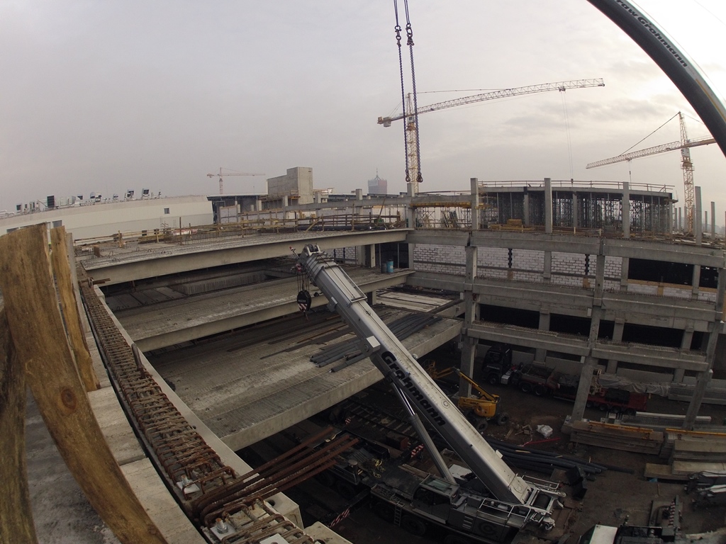 Obiekt budowany z myślą o EURO 2012. Powstał w wyznaczonym terminie mimo bardzo ciężkiej zimy. Prace trwały również w temperaturach – 15 stopni Celsjusza. Montaż był bardzo skomplikowany, ponieważ obiekt znajdował się nad czynnymi torami kolejowymi. Prace stricte montażowe odbywały się tylko podczas 5 godzin nocnych, ponieważ tylko wtedy były wyłączane trakcje. Na obiekt składa się prawie pół tysiąca elementów prefabrykowanych. W zakresie Pekabex były: słupy, belki, płyty HC, płyty TT oraz konstrukcja stalowa podwieszająca stropy. Jedna z ciekawostek tego obiektu, jest fakt, iż część stropów była podnoszona hydraulicznie do swojego docelowego miejsca.